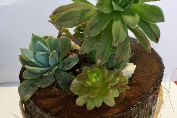 Vendo mini jardines de cactus y suculentas en maceteros rústicos con material reciclado y troncos de pida de árboles